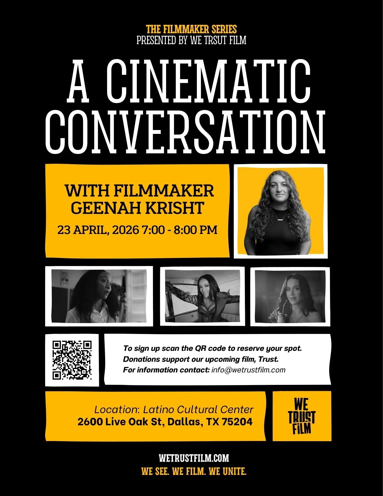 Don't miss this opportunity to screen her never-before-seen film and engage in a compelling conversation with Geenah about her style, perspective, and extensive experience in the film industry.